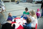 Z okazji Święta Konstytucji przygotowaliśmy wystawę "3 Maja w literaturze", która została zaprezentowana podczas uroczystości na miejskim rynku. Dzieci uczestniczyły w zabawach związanych ze świętem: rozwiązywały krzyżówki, kolorowały symbole narodowe, malowały sobie buzie. Wszyscy odwiedzający namiot Biblioteki zostali obdarowani flagami i kwiatami. Na zakończenie uroczystości zatańczono Poloneza i odśpiewano Hymn Narodowy.