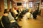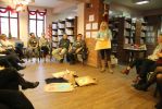 Spotkanie poprowadziła z energią i zapałem pani Grażyna Sobieska – Szostakiewicz, trenerka Polskiego Stowarzyszenia Pedagogów i Animatorów KLANZA. Zaproponowane przez Panią Grażynę zadania, umożliwiły wszystkim wspólną aktywną zabawę. Przykładem twórczego wykorzystania potencjału tkwiącego w grupie było stworzone przez uczestników szkolenia, w ciągu zaledwie kilkunastu minut - przedstawienie teatralne oparte na wierszach m.in. Danuty Wawiłow, Ewy Szelburg – Zarembiny i Doroty Gellner opowiadające o oswajaniu lęków. Poznane podczas spotkania działania animacyjne na pewno zainspirują wszystkich do dalszej pracy z dziećmi i młodzieżą.
