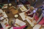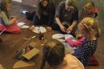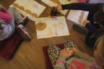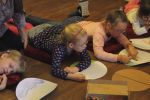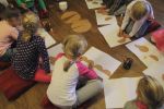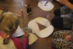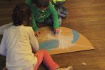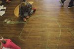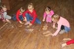 Brązowe "miski" stały się także inspiracją dla czytelników odwiedzających bibliotekę. Podczas spotkania zamieniały je na podłodze w zwierzęta, kwiaty, samochody, okulary, budowle, postacie bajkowe...