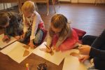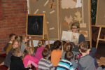 W październiku najmłodsi czytelnicy wzięli udział w zajęciach, których inspiracją były książki Iwony Chmielewskiej: "Cztery zwykłe miski" i "Kłopot". "Książkę można wymyślić o wszystkim "- pisze Iwona Chmielewska w pierwszych słowach książki dla dzieci "Cztery zwykłe miski". Tak też sama czyni w swej opowieści, bo pretekstem do jej powstania są najzwyklejsze przedmioty codziennego użytku - cztery małe miski. Naczynia są zwykłe, ale książka o nich - niezwykła. Do stworzenia książki użyte zostały niepotrzebne już nikomu papiery i stare książki wycofane z bibliotek. Nikt ich już nie chciał, a teraz mogą żyć nowym życiem. Dwa koła wycięte i podniszczona okładka dają początek zwykłym, niepozornym miskom, które dzięki kreacji i ręce autorki stać się mogą wszystkim. Podobnie dzieje się z "Kłopotem" - wypalonym przez żelazko, z którego można stworzyć arcydzieło.