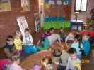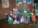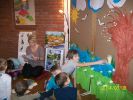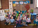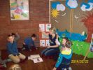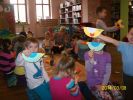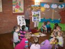 Pani Wiosna wystąpiła w wierszach, opowiadaniach i bajkach. Zajęcia literackie połączone z artystycznym zapałem dzieci dały niesamowity efekt zmiany wystroju Oddziału dla dzieci na wiosenny. Dzieci przygotowały, barwne motylki i ptaszki oraz Panią Wiosnę. Podczas zabaw ruchowych naśladowały także bociana i żabki.