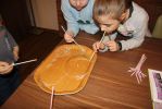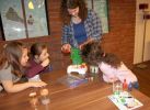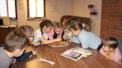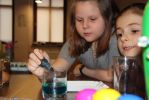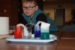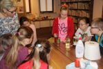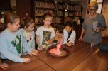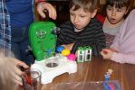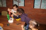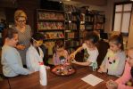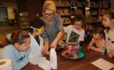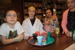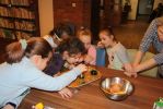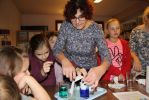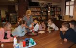Podczas pierwszych zajęć "Guzik z mleka, czyli fantastyczne eksperymenty dla ciekawskich świata" na podstawie książki Krzysztofa Zięby poznały niektóre zagadnienia ze świata fizyki i chemii. W naszym bibliotecznym laboratorium wykonaliśmy kilka spektakularnych doświadczeń chemicznych, między innymi: powietrzny odrzutowiec, bańka mydlana, wędrująca woda, wybuchający wulkan i inne. Przeprowadzone doświadczenia wzbudziły zainteresowanie i ciekawość dzieci, a efekty końcowe były miłym zaskoczeniem. Na zajęciach, oczywiście nie mogło zabraknąć książek popularnonaukowych związanych z tematem, w których dzieci szukały wskazówek do wykonania eksperymentu.