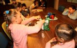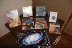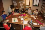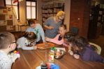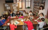 Na następnych zajęciach sięgneliśmy po kosmiczne tytuły, których w zbiorach biblioteki jest bardzo dużo. W czasie spotkania dzieci na podstawie książek próbowały uświadomić sobie przede wszystkim ogrom i potęgę Wszechświata., którego rozmiary i sposób powstania przekraczają granice ludzkiego poznania. Książka Ulf Stark i Evy Eriksson "Jak tata pokazał mi wszechświat " pokazuje jak wygląda mikro- i makrokosmos i łatwiej to zrozumieć. Dzieci poznały ciekawostki o każdej z planet, a następnie wykonały wybrane przez siebie planety i powstał ich własny Wszechświat w bibliotece.