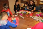 Podczas zajęć na uczestników czekało niezwykłe zadanie artystyczne, ponieważ z materiałów recyklingowych tworzyły dzieła sztuki. Powstały piękne obrazy i malownicza architektura.