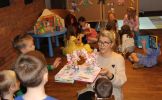 Najmłodsi czytelnicy uczestniczyli w zajęciach związanych z ulubionymi postaciami bajkowymi. Obejrzały przedstawienie pt. "Muzykanci z Bremy" w wykonaniu aktorów studia KRAK-ART-BIS. Brały udział w zabawach literackich wykazując się znajomością bajek. Z tej okazji zostały zaprezentowane w bibliotece i przedszkolu książki: obrazkowe, 3D i dźwiękowe. Zapraszamy naszych czytelników do wypożyczania bajek, baśni i legend.