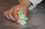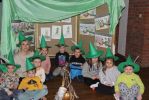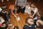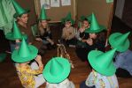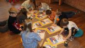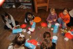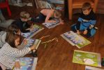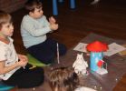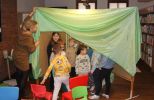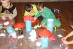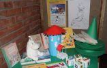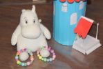 Smukły, niebieski i z czerwonym dachem... Taki domek mali budowniczowie wykonali podczas zajęć w bibliotece. Za sprawą tego domku i jego mieszkańców, biblioteka zamieniła się w Dolinę Muminków.