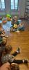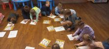 Z tej okazji dzieci z grupy przedszkolnej, uczestniczyły w zajęciach czytelniczych. Przedszkolaki poznały wyjątkową postać- kolorowego potwora z książki o takim samym tytule, której autorką jest Anna Llenas. Dzieci najpierw zapoznały się z emocjami (radość, smutek, strach, złość, spokój), które całkowicie pomieszały się Potworowi, a następnie razem z dziewczynką, jego przyjaciółką, pomagały je uporządkować, malując kolorowe emocje w odpowiednich słoiczkach.