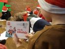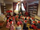 Opowiadań o Mikołaju i jego pracy przed świętami - nasi najmłodsi czytelnicy słuchali podczas spotkań w bibliotece. W bibliotecznej pracowni, po nałożeniu mikołajowych czapek w magiczny sposób zamienili się w Pomocników Mikołaja i wspólnie z elfem biorą udział w przygotowaniach do Świąt Bożego Narodzenia. Ubierają choinkę, porządkują prezenty, piszą listy i wykonują ozdoby świąteczne.