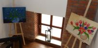 W holu biblioteki można było oglądać wystawę Donaty Szakiewicz "Tulipany"
