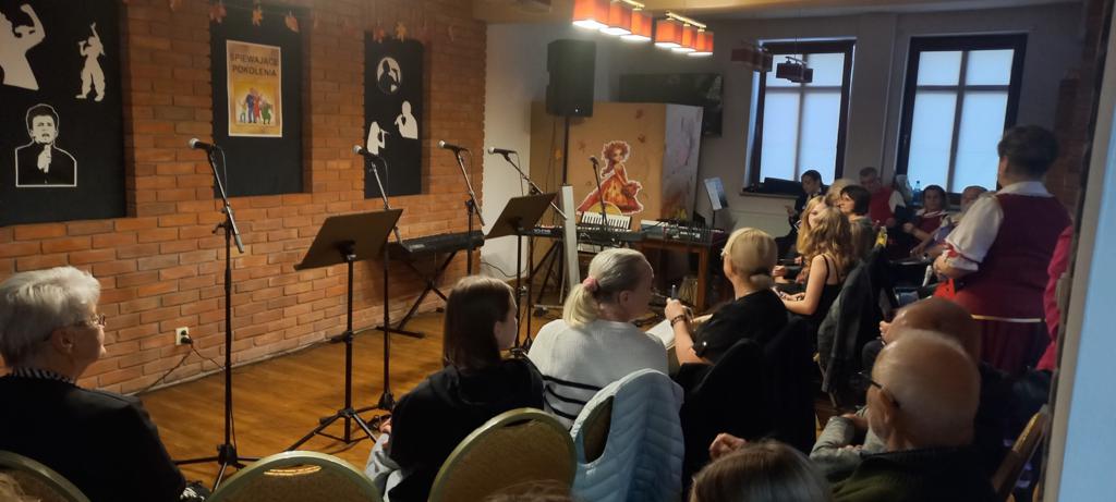 3 października w naszej bibliotece odbył się koncert "Śpiewające pokolenia". Publiczność świetnie się bawiła, śpiewała razem z wykonawcami. Nad przygotowaniem grup i koncertu pracował społecznie Pan Mariusz Trupacz. Podczas przerwy i na zakończenie nie zabrakło słodkości. Projekt przygotowała nieformalna grupa ROZŚPIEWANA KLIKA - Mariusz Trupacz, Janina Waszkiewicz i Małgorzata Trupacz. Dziękujemy wszystkim za liczne przybycie i zapraszamy na kolejne imprezy w bibliotece.