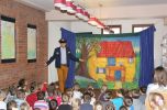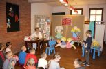 Gościliśmy także aktorów Teatru Edukacji i Profilaktyki "Maska" z Krakowa ze spektaklem "Opowieści z teczki Profesora Książeczki". Do jego obejrzenia zaprosiliśmy około 70 uczniów szkoły podstawowej. Spektakl opowiadał historię Profesora Książeczki który uwielbia czytać. W zaciszu jego leśnej pracowni powstają kolejne opowieści, które za każdym razem Profesor chowa do kolorowej teczki.