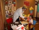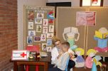 Grupy przedszkolne brały udział w zajęciach POGOTOWIA LITERACKIEGO pt. "Czytamy wyrazy i obrazy". W scenerii bajkowego gabinetu lekarskiego Pani doktor Książkiewicz badała wzrok, temperaturę i serduszko czy bije dla książek u każdego czytelnika. Udzielała porad literackich i każdy z pacjentów miał zaaplikowane suplementy czytelnicze, otrzymał receptę z zaleceniami oraz dawkę dobrej literatury.