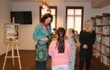 Na spotkanie z krakowską pisarką przybyły uczniowie I i II klasy ze Szkoły Podstawowej. Pisarka zadebiutowała w 2006 r. cyklem książek o przygodach sześcioletniej Kingi, dziewczynki z charakterem i wybujałą wyobraźnią. Pisze bajki dla dzieci, współpracuje z magazynem "Świerszczyk " w którym tworzy pamiętnik tytułowego bohatera pt. "Z pamiętnika Świerszczyka Bajetana Hopsa".