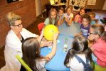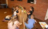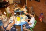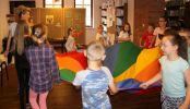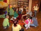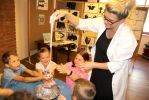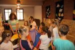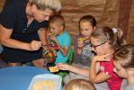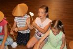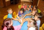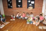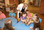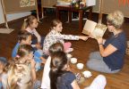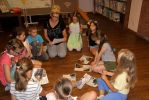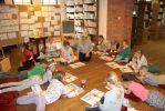 Tegoroczne wakacje nasi czytelnicy spędzili aktywnie. Spotykali się od poniedziałku do piątku. Część zajęć odbywała się w ramach projektu "Para buch! Książka w ruch!", który ma na celu promocję książek popularnonaukowych. Pilotażowy projekt realizowany jest przez Fundację Rozwoju Społeczeństwa Informacyjnego we współpracy z niemiecką Fundacją Deutsche Telekom Stiftung. Zajęcia zaczęły się od spotkania z bajkami. W Bibliotece pojawiły się książki pełne aromatu truskawek, czekolady, cytryn i tajemniczych bohaterów związanych z ulubionymi przysmakami, które sobie dzieci przygotowały. Nie zabrakło ulubionych postaci bajkowych i zabaw z nimi.