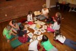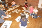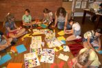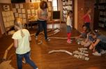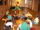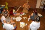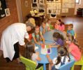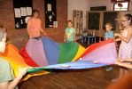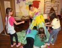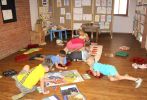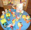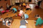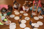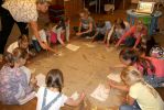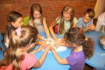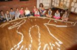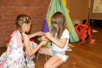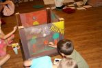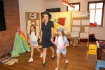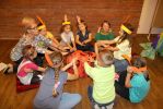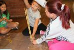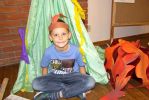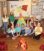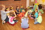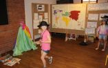 Na podstawie "Księgi podróży" i innych książek podróżniczych dzieci w ciągu tygodnia poznawały różne zakątki świata i swoich rówieśników. Na początku wybraliśmy się na kontynent Azji i tam odbył się kurs projektowania kimona, wachlarza i jedzenia pałeczkami. Tylko, że pałeczki to patyczki do szaszłyków a ryż zastępowały płatki, aby było łatwiej nauczyć się nimi posługiwać. W Afryce dzieci wykonały projekty turbanu, fryzury i biżuterię afrykańską. W Europie wybraliśmy kilka ciekawostek z różnych państw. Dzieci budowały bardzo znane zabytki europejskie: Wieżę Eiffla, Bramę Brandenburską, Wieżę Zegarową Big Ben. Odwiedziły Holandię i przygotowały kompozycję tulipanów. Próbowały włoskiej pizzy i na zakończenie stworzyły pokaz paryskiej mody. Najbardziej spodobały się dzieciom zabawy w Indiańskiej Wiosce.