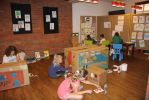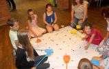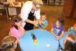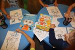 Kolory, wynalazki, kosmos i roboty dostarczyły dzieciom niezapomnianych wrażeń. Na wstępie bawiły się różnymi barwami, kształtami i cieniami. Następnie wykorzystując różne barwniki spożywcze, mąkę, sodę, płyn do mycia naczyń czy piankę do golenia przeprowadziły proste eksperymenty chemiczne tworząc np: tęczę, "wybuchające wulkany", masę plastyczną i inne pasjonujące bąbelkowe czary. Misja w kosmosie była bardzo twórcza. Poznały układ słoneczny, dowiedziały się co trzeba zrobić, aby być kosmonautą oraz jak wygląda statek kosmiczny. Wykonały również swoje własne statki kosmiczne. Natomiast projektowanie robotów było nie lada wyzwaniem, ale nie sprawiło wielkich trudności. Dzieci wspólnie zrobiły wielkiego robota, następnie zaprogramowały go w bibliotece, aby mógł się poruszać.