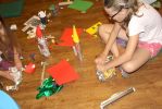 Wakacyjne magiczne i ekologiczne prace plastyczne wykonane różnymi technikami powstały z materiałów odpadowych. Podczas zabaw z wykorzystaniem plastikowych butelek, kubeczków, nakrętek, kartonowych zgrzewek, rolek, pudełek czy papieru dzieci stworzyły niezwykłe krajobrazy, zabawki i zwierzęta. Materiały wykorzystane do prac zyskały drugie życie i służyły im do gier i zabaw podczas zajęć.