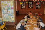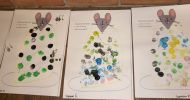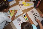 Za nami kilka dni wrażeń, a to za sprawą wyjątkowego Dnia Kropki. Jest to dzień odkrywania talentów wśród dzieci. Biblioteka po raz drugi przyłączyła się do tej inicjatywy zapraszając swoich czytelników. Na spotkaniach dzieci poznały historię dziewczynki Vashti, która dzięki swej nauczycielce uwierzyła, że ma talent plastyczny. Nie zabrakło zabaw, w których nieodzownym elementem były oczywiście kropki. Wspólnie czytaliśmy książki: "Kropka" Petera H. Reynoldsa, "Kliknij mnie" Salina Yoom, "Trzy kropki" Asi Olejarczyk i Hevre Tulleta: "Naciśnij mnie", "Figle migle", "Porysuj mnie", "Och. Książka pełna dźwięków". Czytelnicy, tak jak Vashti, artystycznie ozdabiali kropkami swoje obrazy. Na zakończenie spotkania dzieci oglądały książeczki i robiły pamiątkowe zdjęcia.