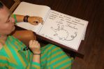 Na zakończenie autorka zaproponowała im zabawę, aby narysowały swojego bohatera i przedstawiły go. Każdego czytelnika nagrodziła autografem na zakładce i podpisywała dedykacje w książkach oraz w kronice biblioteki.